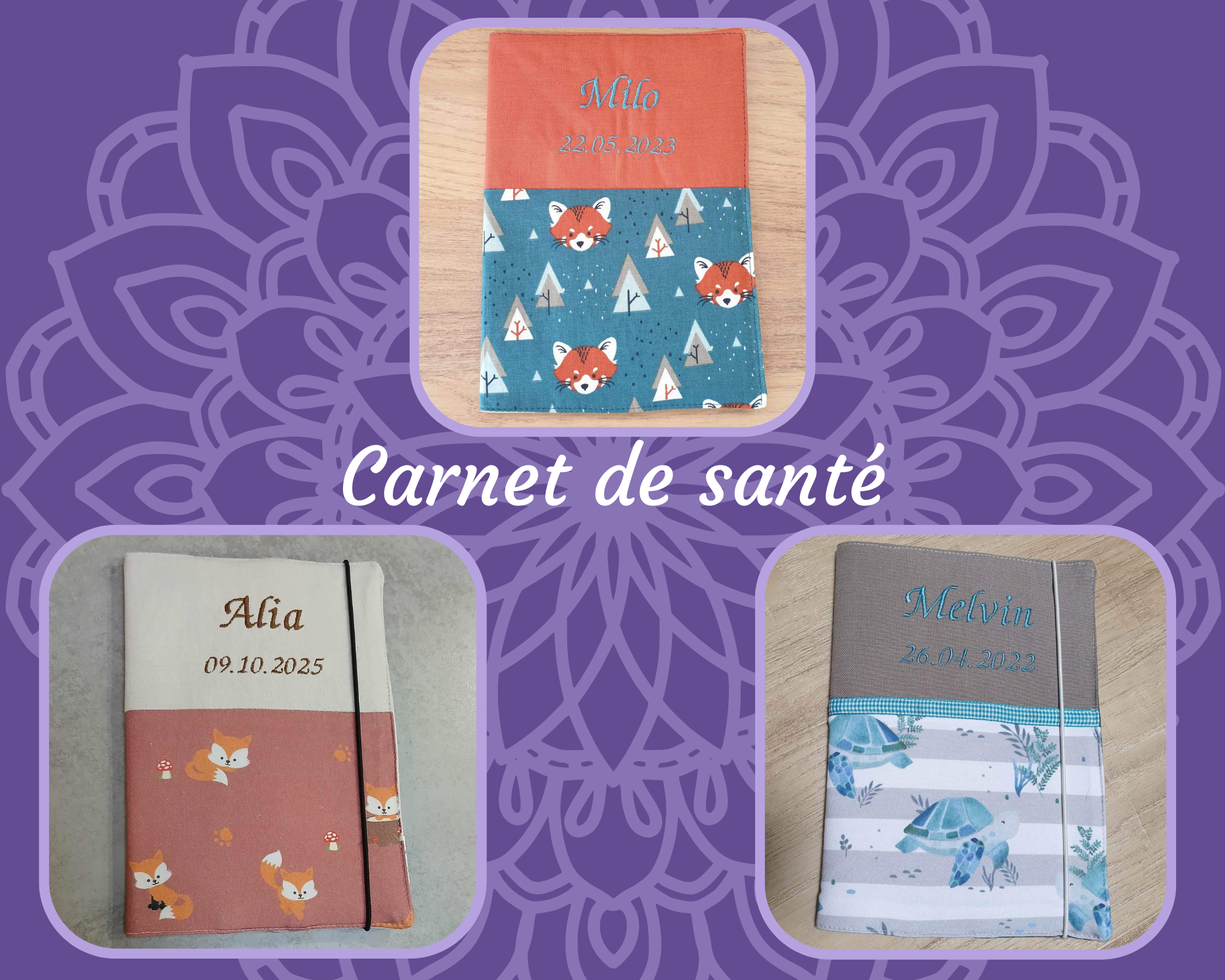 une jolie housse personnalisée pour protéger le carnet de santé de bébé avec ses poches de rangement idéales pour glisser carnet de vaccination et carte de rendez-vous.